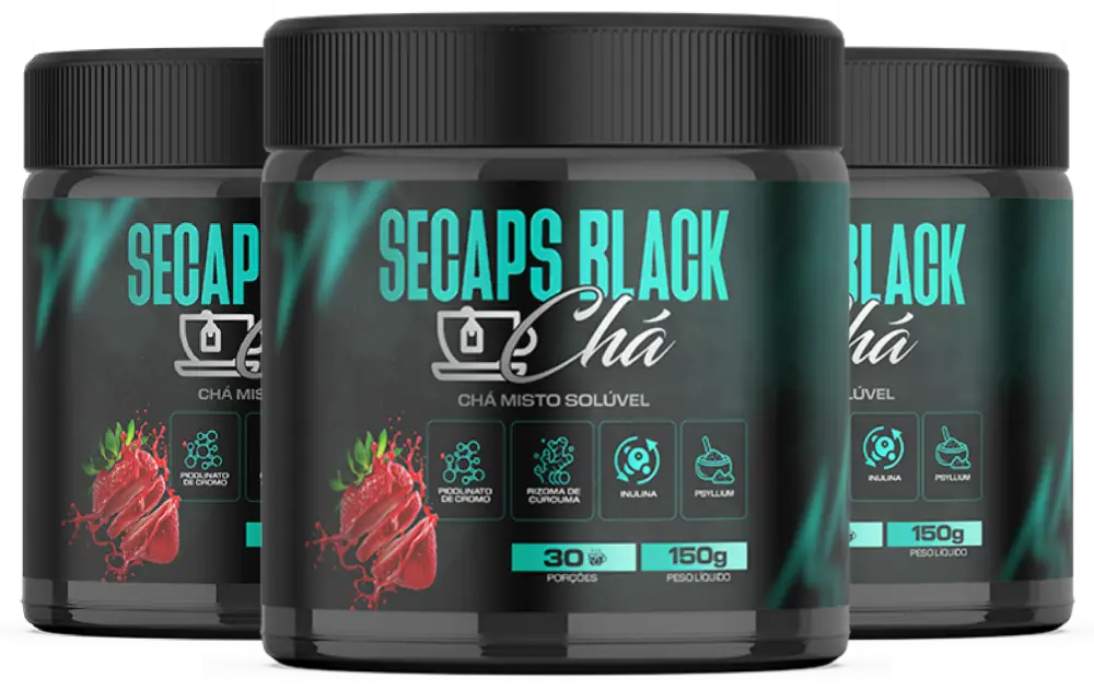 O Secaps Black Chá é um detox solúvel de morango que reduz o inchaço e controla a vontade de doces.
